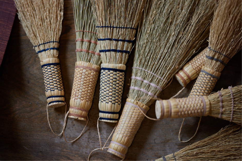 脈々とつづいてきたタネと技術を受け継いで、ホウキモロコシを育てるところから1本ずつ丁寧に編む箒。気持ちがいいくらいホコリをを集める、頼れる相棒です。